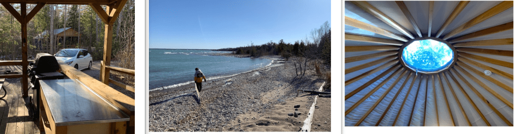 We had a lot of fun at MacGregor provincial park. Our yurt even had a “skylight” in it which allowed for some very comfortable star-gazing as this was early spring so we had to bring our warm jackets. Its a lovely park, close to Toronto which can add a lot of fun to your weekend. After a few day’s it was time to head back to the grind, stopping for some more great food, although this time at the Barley Vine restaurant in the old Orangeville train station as the car needed a few more electrons from the nearby Flo L2 station.