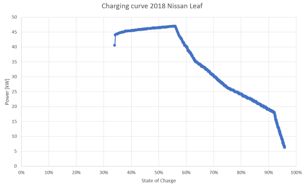 The Nissan Leaf lacks active battery cooling, which can be a problem on longer journeys as the car has no alternative but to slow down charging speeds to keep battery temperatures manageable. In the 800 km trip table, I took some account for this, using a slower “average-charge-speed” of 20 kW, than in the other tables (I used 27 kW in the 400 km, and 35 kW in the 190 km table).