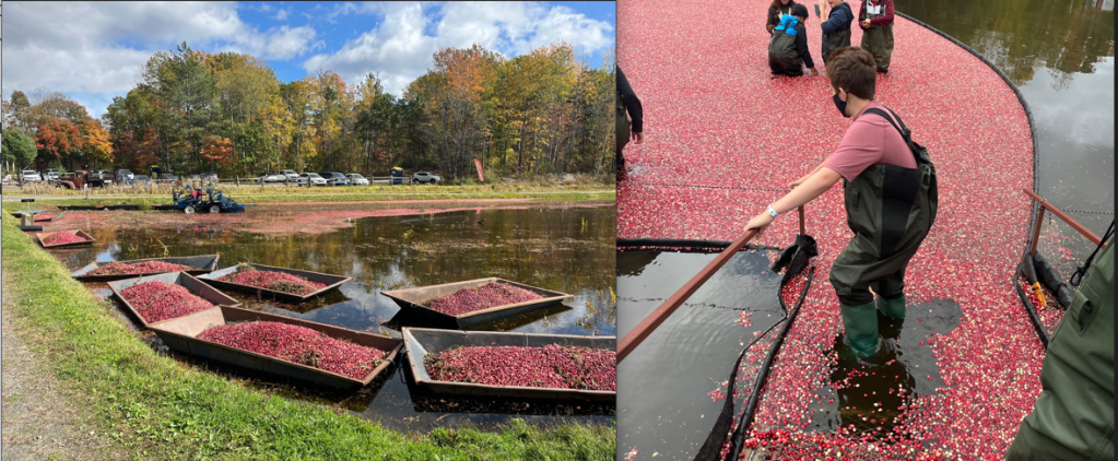 We spent most of the time at Muskoka Lakes farm and winery, where we got quite the education in cranberry farming. Cranberries are grown in fields, and grow over the summer. Come harvest time, the fields are flooded, and a “sit-down-mover” contraption of sorts, is used to harvest the cranberries. Since the fields are flooded, the cranberries float, and are scoped up into “boats”. After the harvest the fields are drained and enjoy a little bit of dry time, before winter sets in. Over the winters the fields are flooded again to protect the delicate wines from frost. For pest control, a third flood is often done in the spring. All this requires abundant water, something that the Muskoka region has in spades.
