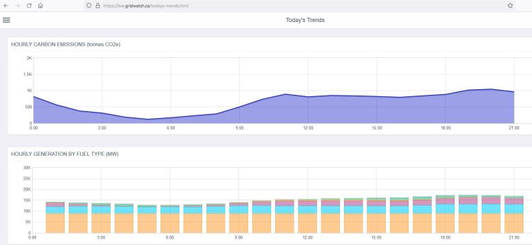 The simplest solution is just to adjust my smart outlet schedule to avoid 4-9 pm, but otherwise let the Eco-Flo top up, even if that is during the more-expensive afternoon/evening hours. But as can be seen in the screen-capture below from gridwatch.ca, it seems the gas peaker plants fire up around lunchtime, something that would be nice to avoid.