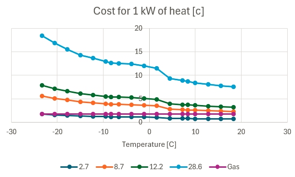 Alas, this is the main reason why the “set-it-and-forget-it” might make some sense. If we do not have to increase the temperature of the house, we can get by with a smaller heat-pump, or use the one we got, a bit further than our current -10 C balance point (see this post).