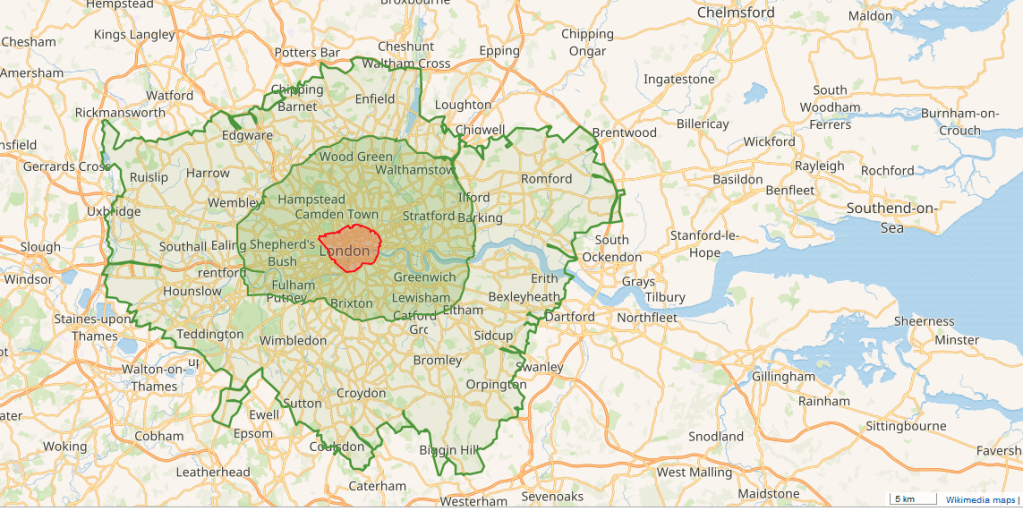 The image below shows the boundaries of London’s three emissions zones at the time of this writing (June 2024). Enforcement is through an extensive camera network, where license plates are recorded and compared to a database of who has paid and for when.