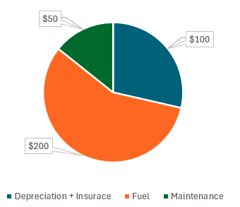 Peering into Edmunds total cost of ownership for a 2022 Tesla Model 3 we see a very different story (https://www.edmunds.com/tesla/model-3/2022/cost-to-own/). For example, fuel costs are only 5% of the estimated total cost of ownership, compared to 57% for Dart. Similarly maintenance is about 10% for the Tesla, while 15% for “Dart”. “Fixed costs” on the other hand dominate the Tesla’s costs, with 80% spent on Insurance, Financing, Depreciation and Taxes, compared to 30% for Dart.