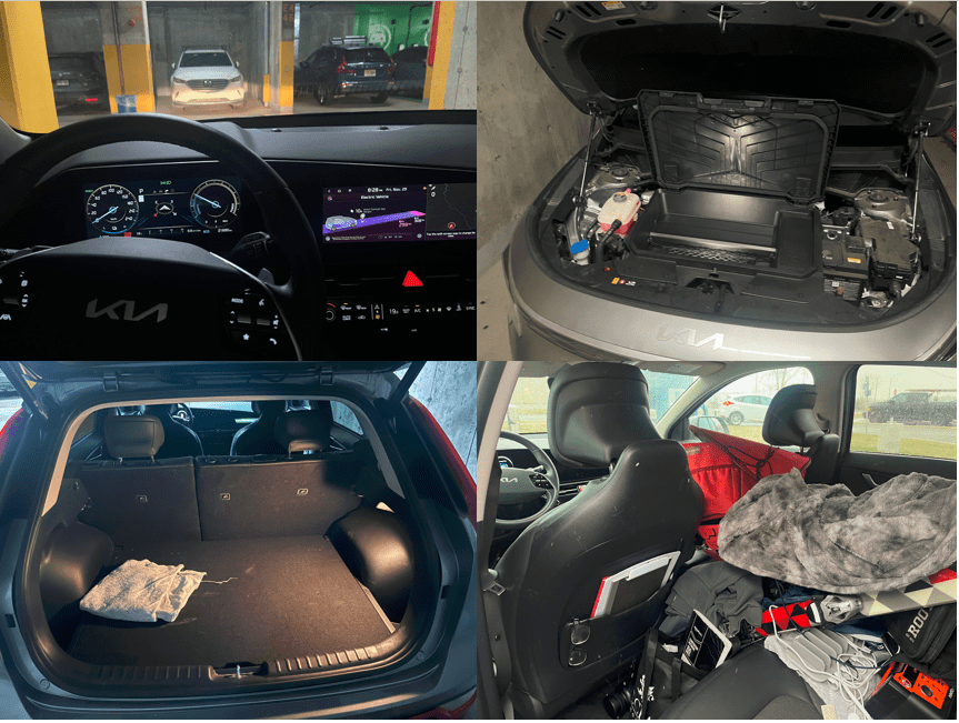 In fairness, if this was our car, we would have put the roof-racks on it (source). But alas, it was a rental, so things got a little cosy in the cabin. There is a small “frunk”, which can hold charging cables. This could be handy as it can be painful to drag the cables out of the back, particularly if they are buried in the sub-trunk.