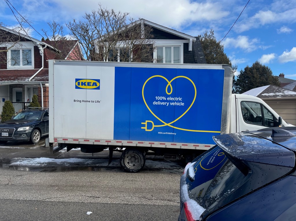 As I wandered the streets of Toronto with my dog, I came upon a friendly crew unloading furniture in an electric delivery truck. What a brilliant idea, as last-mile delivery is rarely a thousand kilometre haul, leverage the strengths of the electric power-train and give the neighbours a break, not to mention the corporate bean counters, lets explore these points in more detail.