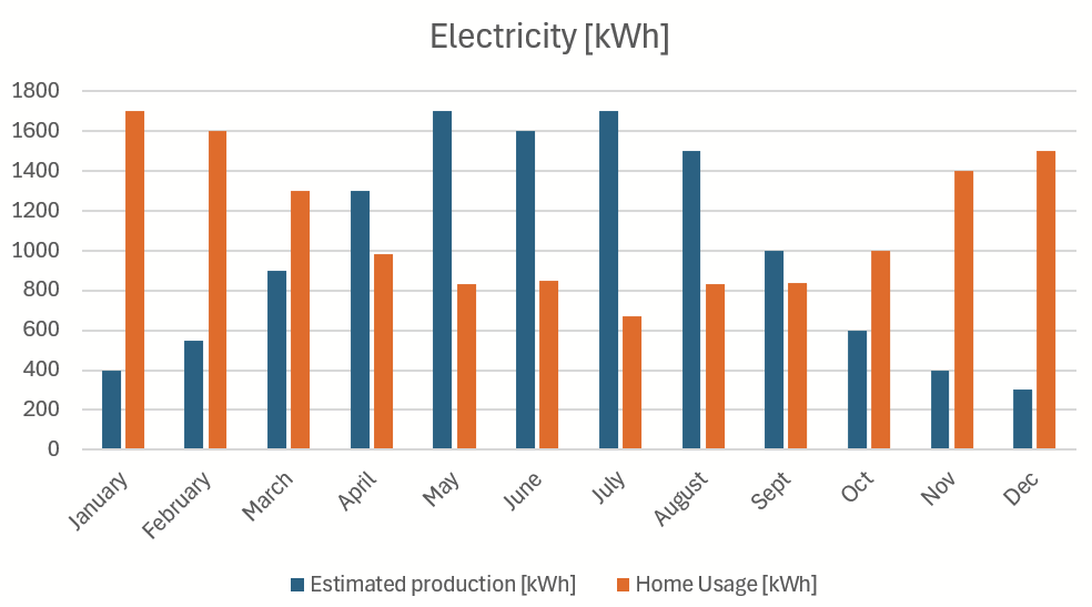 Lets start by quantifying the problem, comparing production and home usage in the “negative” months, e.g. months where we use more than we consume, we find ourselves with a total of about 7 MWh of electrcitiy we would have to “squirrel away for winter”, about half of my homes 13.5 MWh of annual electricity usage.
